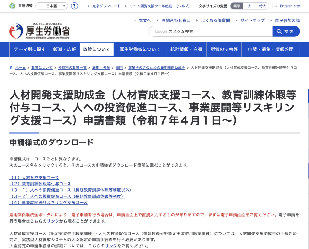 *参考ページ(厚生労働省 > 人材開発支援助成金)
