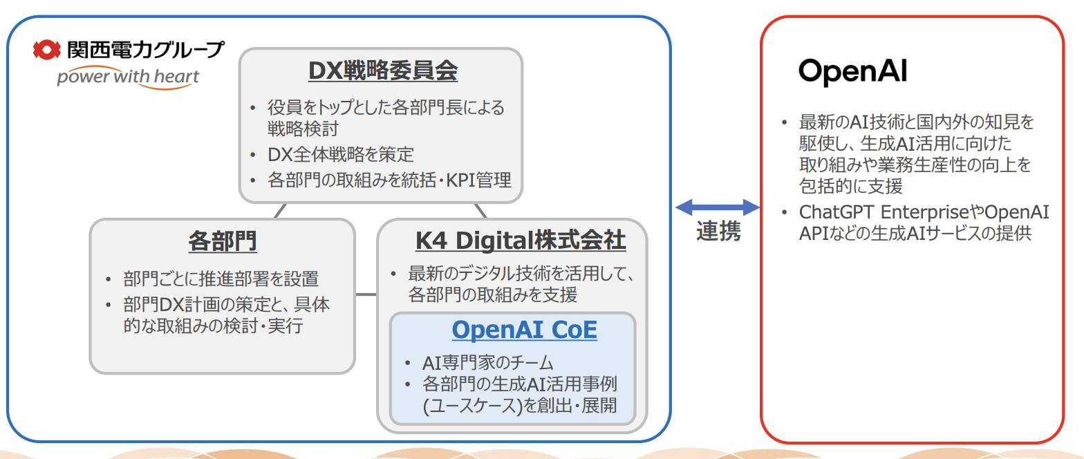 全社員・グループ全従業員へのChatGPT Enterprise展開(OpenAIと戦略的連携、火力発電所トラブル事例学習、届出書類チェック効率化、「AIエージェント」による業務相談対応)