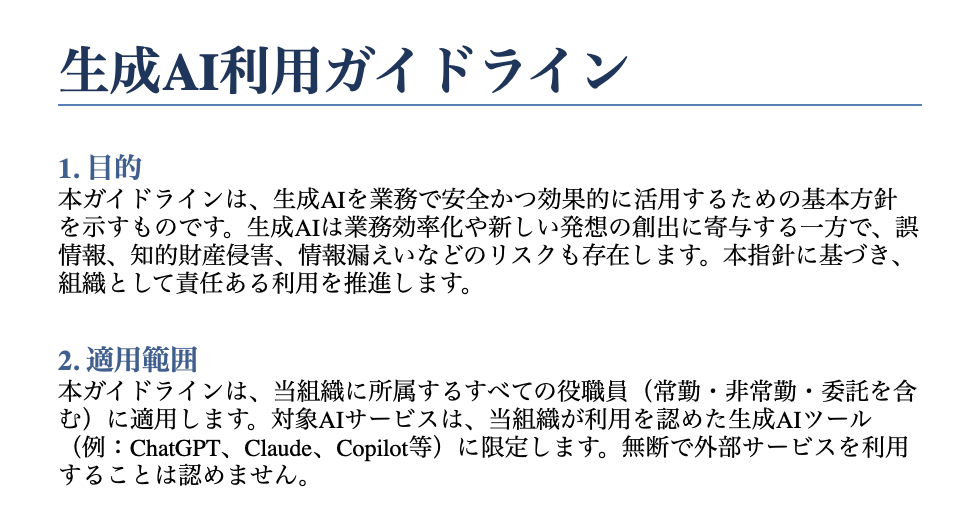 こちらから「生成AI利用ガイドラインのサンプル(.docx形式)」をダウンロードすることができます。