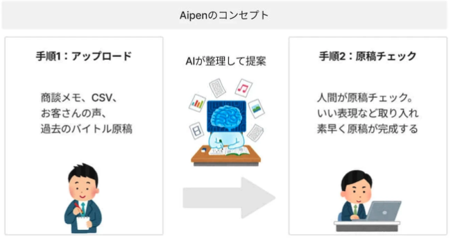 バイトル原稿専用Copilot「Aipen」開発による求人広告作成業務の効率化(生成AIで求人広告フォーマット下書き作成、営業社員の原稿作成業務削減によるセールスタイム創出)