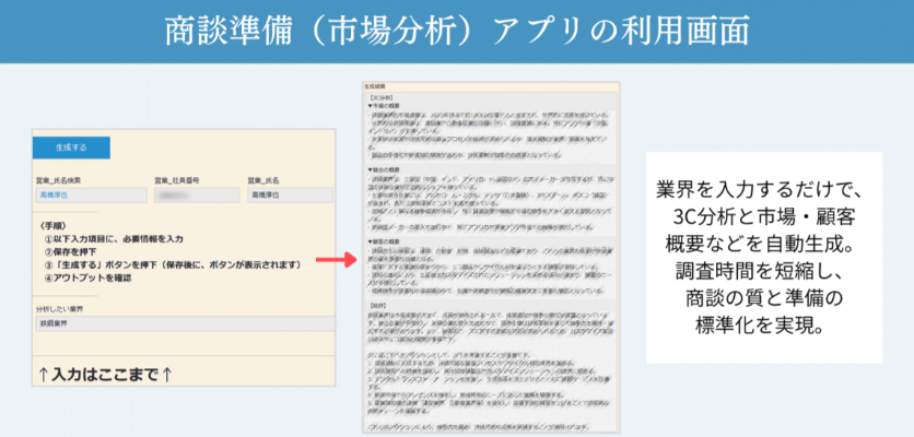 商談準備にかかる時間が33%削減され、30分かかっていた作業が20分で完了するようになった。また、事前に業界知識を把握できることで提案の質が上がり、受注率が20%向上した。導入から約1年で累計利用件数は9535件(2025年8月時点)に上る