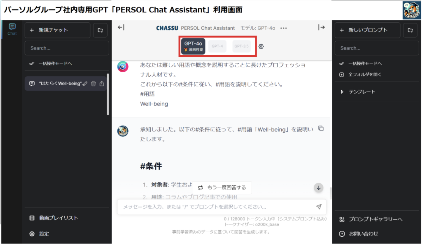 PERSOL Chat Assistant(Azure OpenAI Service、GPT-4o搭載、社内専用GPT)